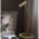 Lampan är gjord i beige-, svart lackad eller borstade mässingfärgad metall. Den har en 200cm lång svart textilkabel med brytare.