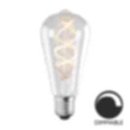 Klar E27 LED Soft Filament, dimmerkompatibel. Ljuskällan ger ett varmare vitt ljus och ter sig lika bra som synlig ljuskälla som inuti en lampskärm. Den är CE-märkt.