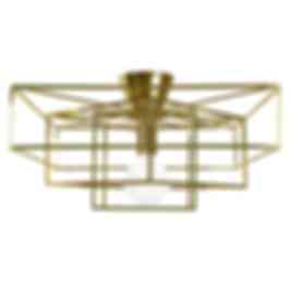 Plafond med tre stommar av kraftigt fyrkantsjärn i mattsvarteller mässing. Respektive stomme är justerbar och går att vrida på för att skapa en egen form på plafonden. Krokupphängning.
