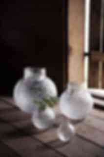 Ernst populära glasvas har nu kommit med en härlig struktur på glaset! Vasen dekoreras även av ett tunt läderband vid den avsmalnande mynningen. Vasen är perfekt för en snittbukett eller en vacker grön kvist. Låt glasvasen bli en iögonfallande detalj på såväl matbordet som i bokhyllan i vardagsrummet. De mindre vaserna i samma serie går även att använda som ljuslyktor.
