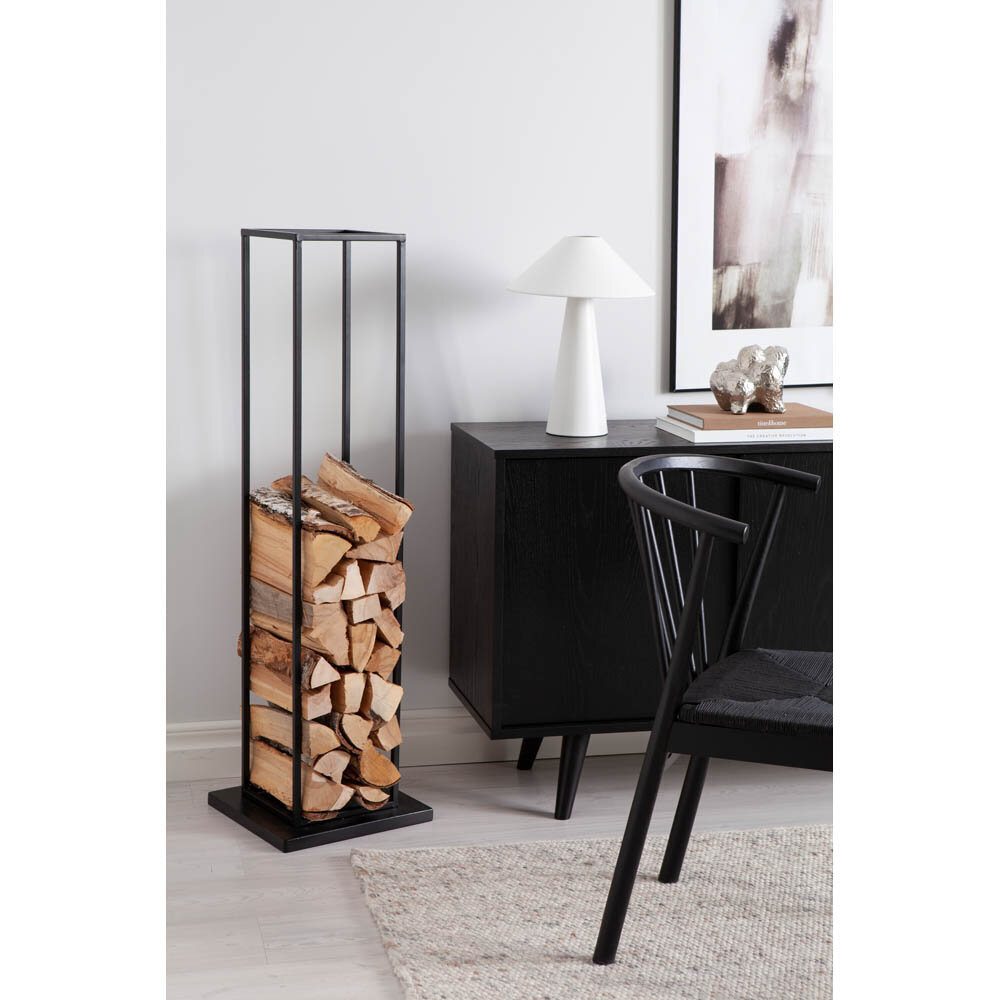 Skapa en inbjudande och varm atmosfär med Wood vedställ. Med sin rektangulära design och svarta metallram är det inte bara ett praktiskt sätt att hålla veden nära, utan också en stilren detalj som lyfter rummet. Vedens naturliga färg kontrasterar vackert mot den svarta ramen, vilket ger ett estetiskt tillskott till din inredning. Perfekt för att göra dina kvällar framför brasan lite extra lyxiga och låta naturens element bli en del av ditt hem. Wood vedställ finns även i en högre variant för dig som behöver ännu mer förvaring.