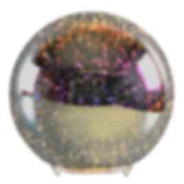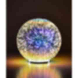 Bordlampa i 3-D glas med med foterdel i kromad metall. Silver när den är släckt och trevlig flerfärgad 3-D effekt då den är tänd. Transparent sladd med brytare.