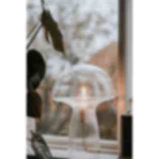 Boosta din inredning med modeenergi från skogen! Fungo 30 Special Edition bordslampa är avbildad som en cool svamp. Den är gjord i klarglas med räfflat glas på foten och där räfflorna går hela vägen upp under ”hatten” likt lamellerna på en skivlingsvamp. ”Hatten” har små vackra luftbubblor i glaset. Lampan har en lamphållare i kontrasterande mässingsfärgad metall samt en 200 cm lång transparent kabel med brytare. Fungo 30 Special Edition är en lite större bordslampa som gör sig fint i ett djupare fönster eller på ett sidebord.
