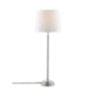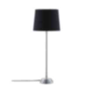 Kent lampfot i kromfärgad metall med lampskärmen Sofia Franza i svart eller vitt. Skärmen är 20cm bred och 15,5cm hög och har ett E27 ringfäste. Lampfoten är 45cm hög och den totala höjden blir 59cm. 1,5m svart plastsladd med strömbrytare. E27 sockel. Max 40W. IP20. Ljuskälla köpes separat.