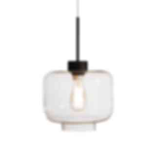 Här är Ritz, en minimalistisk, vacker taklampa, som du väljer i transparent amberfärgat glas, eller klarglas. Lampan har mattsvart kaschering och transparent kabel.