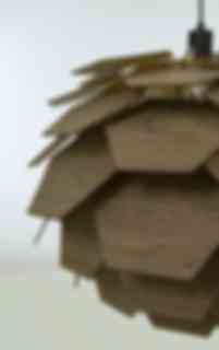 Vackra Carpatica taklampa, med flera lager av trälameller med brunbetsad faner