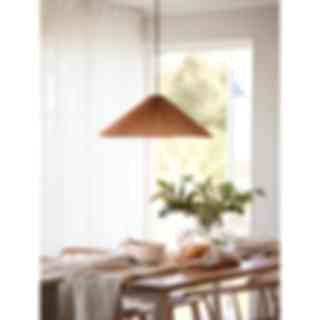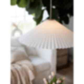 Taklampa Dora med 2m textilkabel och lampskärmen är gjord i vitt eller brunfärgat papper. Takkopp och lamphållare i beige eller brun lackerad metall. Lampan är med 1st E27 lamphållare, förberedd för ojordad anslutning och krokupphängning till befintligt takuttag. Lampskärmen är 60cm i diameter. Ljuskälla och takkontakt ingår ej.