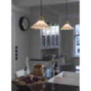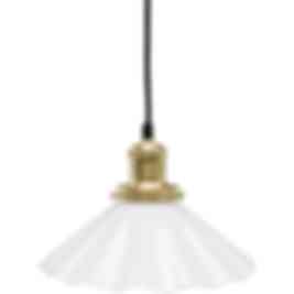 August skomakarlampa i klassisk stil. Veckad lampskärm i glas och lamphållare i metall. Denna lampa passar bra i lite djupare fönster, samt över köksön eller det lilla matbordet. Lampan kommer med en svart textilkabel som är 3 meter lång och har väggkontakt och strömbrytare. E27 sockel, max25W. Höjd 16cm, diameter 25cm. Ljuskälla E27 köpes separarat.