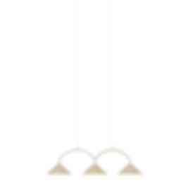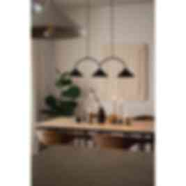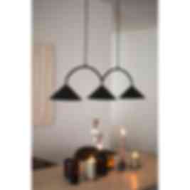 Curve 3 är resultatet av en lek med geometriska former där de mjuka rundade bågarna möter de skarpa triangulära linjerna på skärmarna. Denna lampa passar utmärkt att hänga över matsalsbordet såväl som ovanför köksön. Denna lampa är tillverkad av mattlackerad metall med tre stycken metallskärmar samt två stycken 200 cm långa vita textilkablar med en matchande takkopp i metall. Kronkoppling för takanslutning medföljer ej. Curve finns i beige och svart färg.