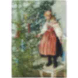 Motivet föreställer Anna, eller Lillanna som den lilla Leksandskullan vanligtvis kallades hos Larssons, hade varit Carl Larssons modell redan 1912. Nu fem år senare bär hon i stället för den gula klänningen, som hör till småflickornas dräkt i Leksand, en svart kjol, ett rödrutigt förkläde, en blommig sjal över den vita överdelen och en blommig hätta på håret. Hon står på en vitmålad bondrokokostol och har fått tag i ett av de tända ljusen i julgranen intill.