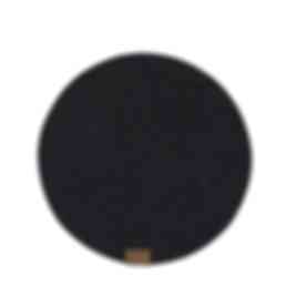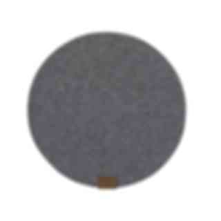En rund bordstablett i tovad ull. Tabletten kan även med fördel användas som grytunderlägg. Dekorativ detalj i läderimitation.