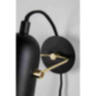 Lampan är gjord av svart metall med detaljer i borstad mässing och den har en 200 cm lång textilkabel med en knapp som brytare på lampan.