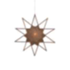 De ljust råbehandlade träramarna är gjorda utav bambu och är täckta av ljus rotting som bildar ett stjärnmönster. Rottingen skapar en naturnära känsla och ger samtidigt ett mjukt och avbländande ljus som sipprar igenom. Denna lampa blir ett fint blickfång i fönstret och är lika vacker från båda håll. Lampan levereras komplett med en 350 cm lång transparent kabel med brytare och stickkontakt.
