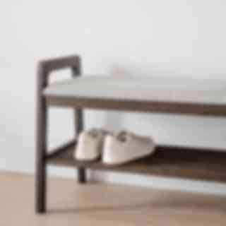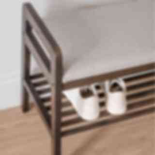 Lyxig look i hallen med mörkt trä och mässing! Den raka men mjuka formen är alltid en rätt design. Bänken Inverness i massiv brunlackad ek med OEKO-tyg är en praktisk kombination av sittbänk och hylla som passar perfekt till skorna i hallen. Eller varför inte till morgontofflorna i sovrummet eller tidningarna i vardagsrummet? Kombinera gärna med andra produkter i hallserien Inverness för en enhetlig stil.