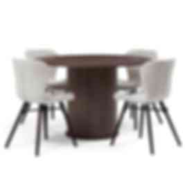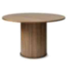 Bistro matbord Ø120 cm är ett runt matbord med pelare, tillverkat i ekfanér. Pelaren har dekorativa ribbor. Ribborna på bordet ger en vacker struktur och skapar ett intressant visuellt element som gör det till en unik möbel.
