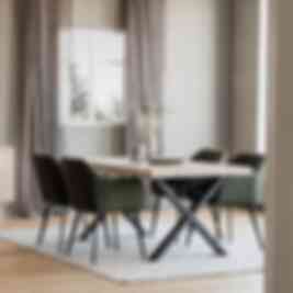 Matbordet Brooklyns signum är hög kvalitet och stilren, rustik, modern design. X-benen i svart pulverlackad metall är stabila. Brooklyn är ett rektangulärt matbord, som passar perfekt till familjens många aktiviteteter: frukost, läxläsning, middagar och samvaro.