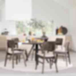 Carradale matbord med tvådelad massiv bordsskiva i massiv fingerskarvad ek och är hållbart och rejält. Matbordet har V-ben i svart pulverlackad metall. Benen löper från mitten av bordet och på så sätt tar de inte upp mycket golvyta. Det ger ett luftigt intryck i rummet och ger plats för många runt bordet.