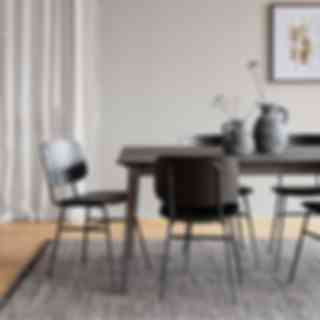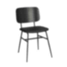 Brent stol i helsvart utförande med en ryggbricka i ask och en skönt stoppad bred sits i konstläder. Metallstommen har en rund profil och benen har en avsmalnande effekt.