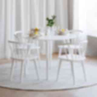 Lotta runt matbord har skandinaviskt och stilren design med lättskött lackad yta. Matbordet finns i krispigt vitt och svart.