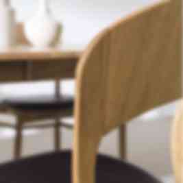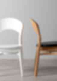 Rainbow stol i massiv oljad ek. Stolen finns i olika färg och material och kombineras med valfri sits i bonded läder eller textil. Tillverkad av Hans K.