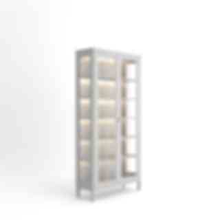 Lättplacerat vitrinskåp med gott om förvaring. Vitrinskåpet erbjuds i färgerna Whitewash, Grey och Black och har 5 hyllplan med glasdörrar och glassidor samt integererad belysning