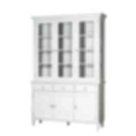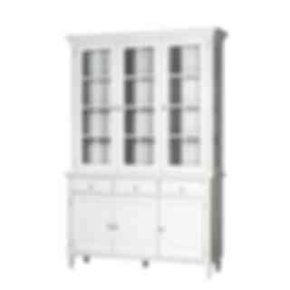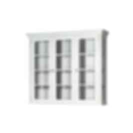 Vitrinöverdel i whitewash med glassidor, 3 dörrar och 3+3 hyllor. Passar ihop med underskåp och skänk 512WW.