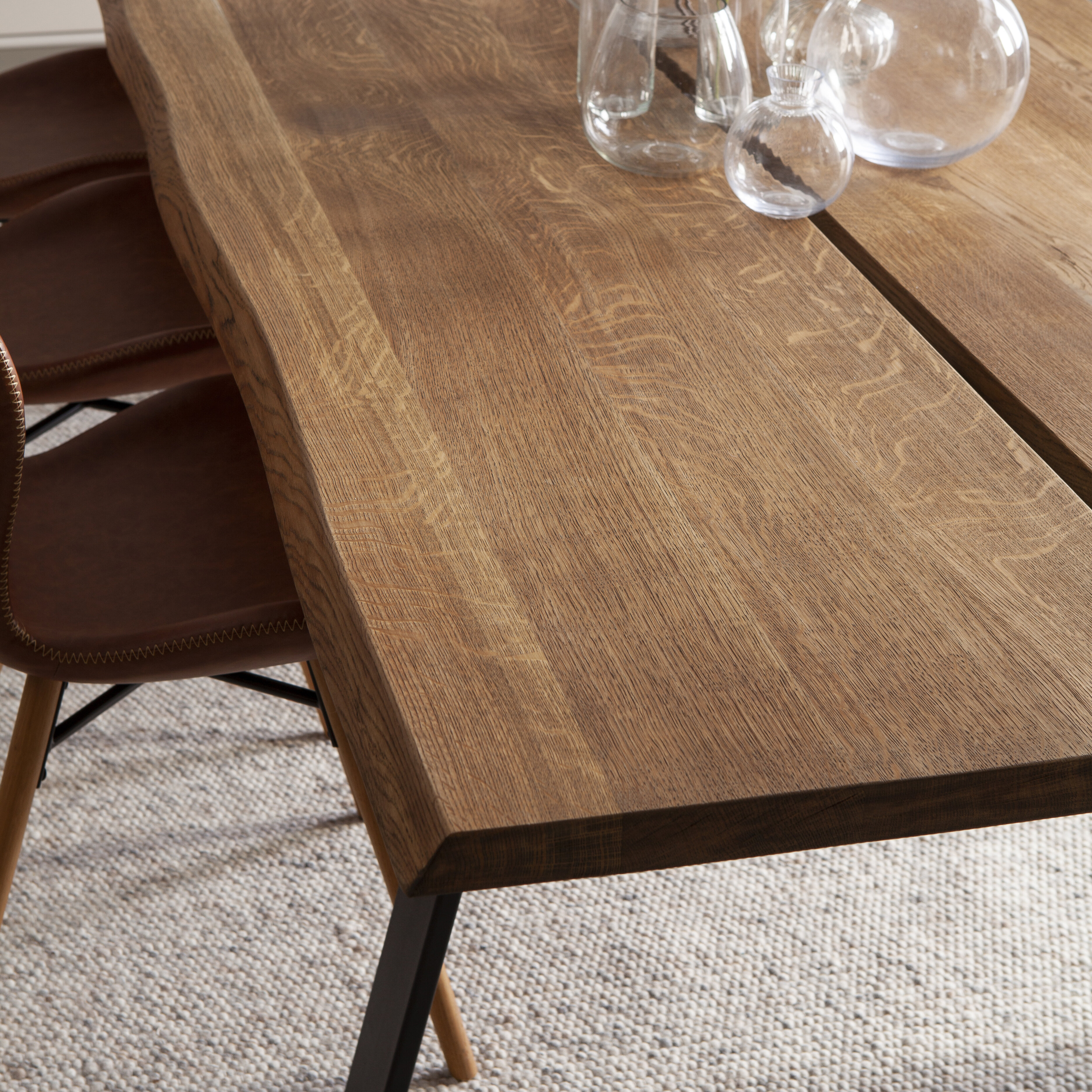 Våra massiva trämöbler i serien Westville tillverkas med omsorg av skicklig fabrikspersonal i Ukraina. Stockar av europeisk ek sågas till rätt tjocklek och längd innan de genomgår en noggrann torkningsprocess för att uppnå optimal fukthalt. Eftersom trä är ett naturmaterial kan vissa variationer förekomma, vilket ger varje bord en unik karaktär med naturliga ådringar, kvistar och färgskiftningar.