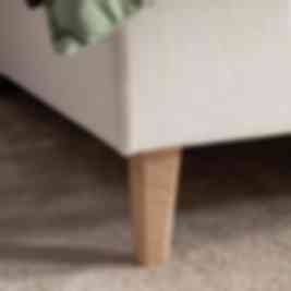 Välj sängen i grått eller beige tyg. Den finns i två olika komforter: fast, eller medium.