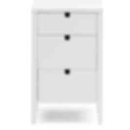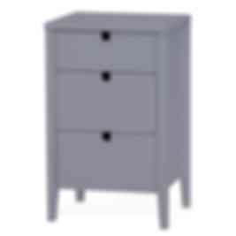 Klinte förvaringsserie är nätta möbler, med genomtänkt och design som håller över tid. Alla delar är i grå- eller vitlackad björk/mdf med urfrästa handtag som detaljer. Denna byrå passar ypperligt både som vanlig byrå och som sängbord!
