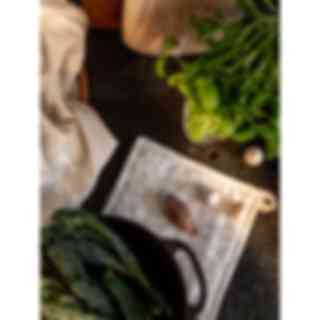Grytlappen har ett med tryckt mönster med förlaga från Carl Larsson. Mönstret De Mina kommer från försättningsbladet på några av Carl Larssons böcker, bland annat boken 'De mina'.