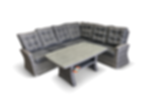 Andorra är våran lyxigaste hörnsoffa, vändbar i färgerna antracit eller pearl grey. Mjuka, sköna dynor i kraftigt olefin tyg. Bordet har tempererad glasskiva och har måttet 140 x 80 cm.