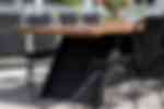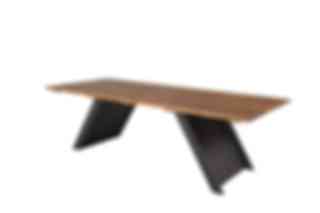 Gediget matbord med toppskiva i akacia och ben i pulverlackerad svart metall