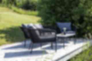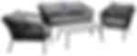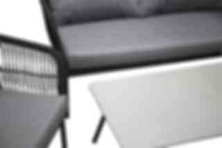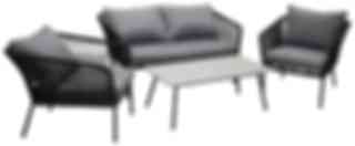 Lindos är en nätt stilren soffgrupp i modern design. Soffgruppen består av en tvåsitssoffa och två karmfåtöljer tillverkad i en svart pulverlackerad metallram. Den har stilfulla detaljer i ryggen av svart rep och det ingår mjuka, tjocka grå dynor. I gruppen ingår även ett lågt soffbord med en grå bordsskiva av cement och ett underrede i samma utförande som soffan. Tillsammans skapar de en stilfull helhet. Hela soffgruppen ligger nedpackad i kartong (enkel att transportera).