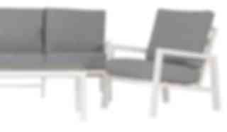 Garda är en härlig, något mindre loungegruppi vit lackad aluminium. Garda består av 2-sits soffa, 2 fåtöljer och bord med keramisk grå skiva. Grå dynor i kraftigt olefin-tyg ingår.