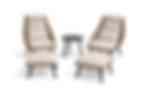 Supersköna fåtöljer som man vill sitta länge i. Olivia är dekorativt flätad i natur färgad konstrotting, benen är i aluminium och lackade i antracitgrå. De ljusa dynorna är tillverkade i kraftig olefintyg. Till gruppen ingår ett lackat sidobord Ø 51 cm och 2 st fotpallar.