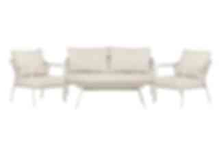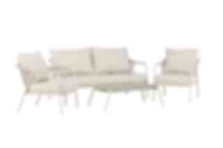 Sicily är en snygg och stilren soffgrupp i beige aluminium och mjuka beigea dynor i slitstark polyester