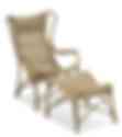 Klassisk, härlig fåtölj med fotpall och tillhörande bord i naturlig rotting. Ergonomiskt utförd för bästa sittkomfort.
