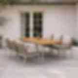 Stolarna har en luftig design med rope-detaljer som både ger karaktär och följsam komfort. Teakdetaljer på armstöden tillför en varm känsla som bryter mot den stilrena aluminiumstommen.