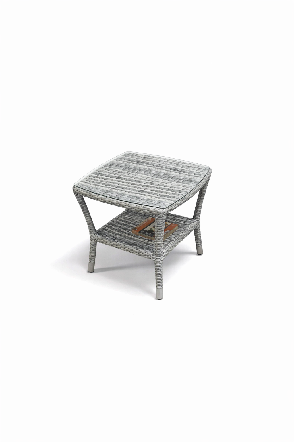 Litet, nätt sidobord i flätad konstrotting. Finns i färgerna antracit, pearl grey och white grey. Bordet har tempererad glasskiva.