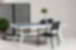 Matbord i aluminium och toppskiva av gråmatt härdat glas:
