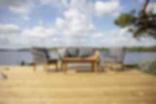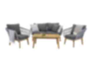 Chania är en modern soffgrupp med ben i akacia och detaljer i slitstarkt rep. Höga armstöd i både soffa och fåtöljer bjuder in till en skön och avkopplande stund. Duka upp för fika eller kryp upp med en spännande bok och lite egentid i denna härliga grupp.