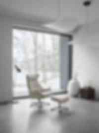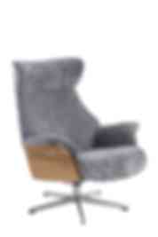 Fårskinnsfåtölj med snurrfot i formgjuten aluminium. Fåtöljen går att få i tyg, läder eller fårskinn. Yttersidor i Ek, Svart betsad ek, Vit pigmenterad ek, eller tyg/skinn att välja på.