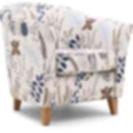 Ekerö clubfåtölj i tyg Botanik blå är en nätt och bekväm fåtölj. Med sina mjuka och vackra former utstrålar den en fin elegans. Fåtöljen har en fast och bekväm sittkomfort. Tyget är ett vackert och behagligt tyg med mönster med blommor och blad. Benen är i oljad ek.