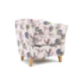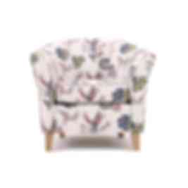 Ekerö fåtölj i tyg Nektar är en nätt och bekväm fåtölj. Med sina mjuka och vackra former utstrålar den en fin elegans. Fåtöljen har en fast och bekväm sittkomfort. Tyget är ett vackert och behagligt tyg med mönster med blommor och fåglar. Benen är i oljad ek.