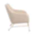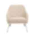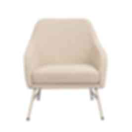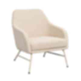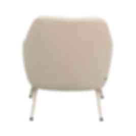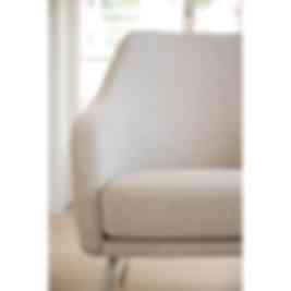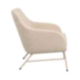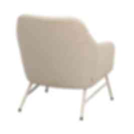 Stoppad fåtölj i metallram, med plywoodförstärkningar, stoppning av polyeterskum, klädd med möbeltyg. Lös sits i polyeterskum 12cm tjock, med spiralfjädring (pocket spring). Ben i pulverlackad metall i sandstruktur, med justerbara fötter.