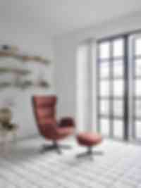 Snurrfåtölj med justerbar rygg från Conform, går att få i tyg eller läder.
