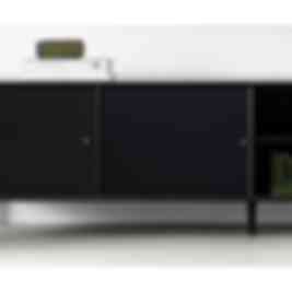 - Mistral TV-bänk med tygdörrar/trädörr 214 cm svart