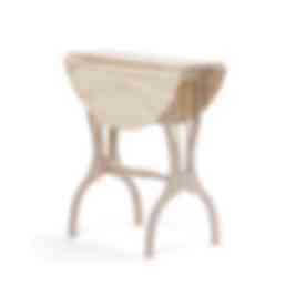 Sundborn klaffbord är tillverkat efter en förlaga i direkt tolkning av det bord som Karin själv ritat och låtit tillverka. Bordet kan upplevas lite ostadigt och ska inte användas som ett matbord. Klaffbordet är tillverkat i massiv vitlackad furu(bordsskivan) och plywood(benen) och är lätt att torka av.