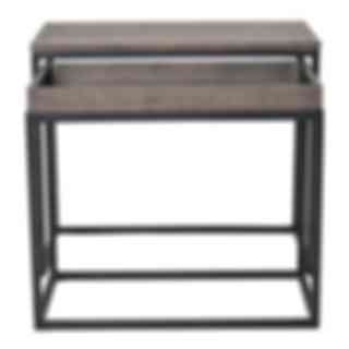 Det större bordet har måtten: 60x30 cm, H57 cm. Det mindre bordet: 55x25 cm, H52 cm.