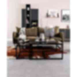 • Soffbord i härdat svart glas med underrede i svart pulverlackad metall.